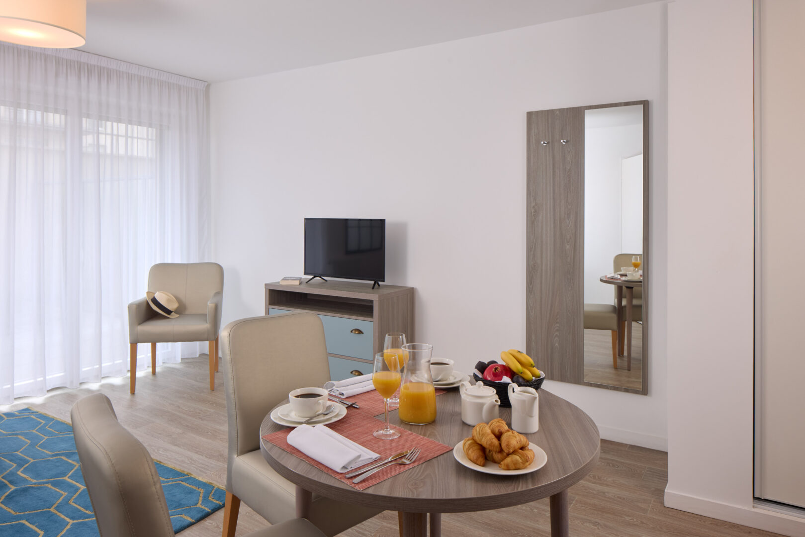 We offer furnished and fully-equipped flats, from studio to 3-room apartments, with open-plan kitchen, large bathroom with shower, Wi-Fi, balcony or private garden depending on the accommodation. The comfort of home with the services of a hotel.
